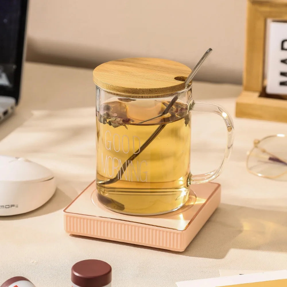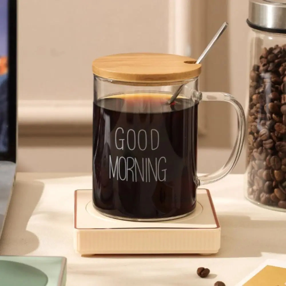 كوب عصري مصنوع من زجاج البروسيلكات مع غطاء خيزران بعبارة لطيفة