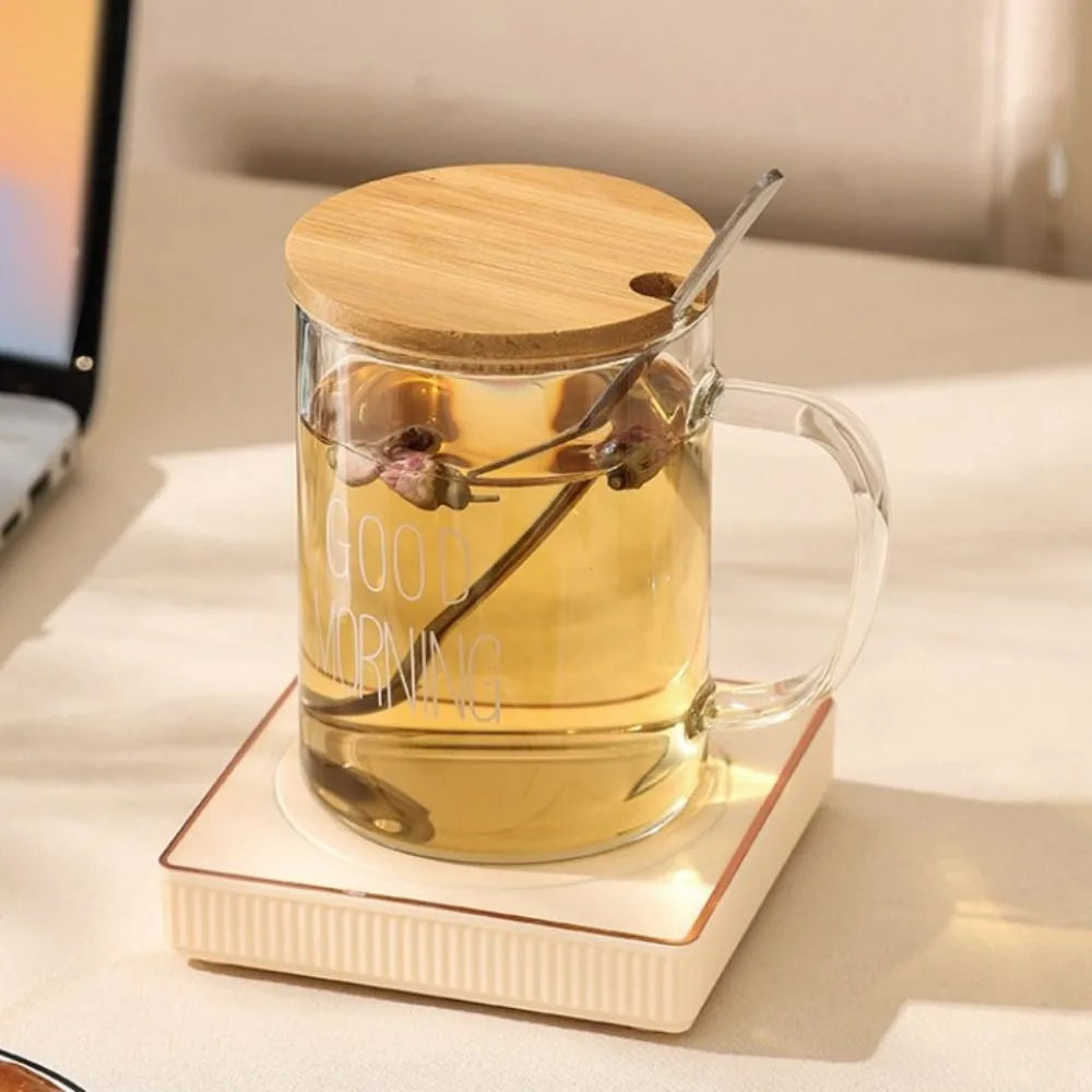 غطاء بامبو أنيق يساعد على الحفاظ على حرارة المشروب ومنع الانسكاب.