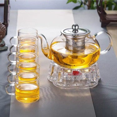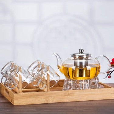 صُمم طقم الشاي الزجاجي الأنيق هذا ليمنحك تجربة شاي لا تُنسى. صُمم إبريق الشاي والأكواب، المصنوعة من زجاج مقاوم للحرارة، لتعكس لون الشاي ونكهته النقية بأفضل شكل.